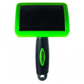 Часто расположенные зубцы из нержавеющей стали со скругленными кончиками бережно ухаживают за шерстью, мягко вынимают отмерший подшерсток, препятствуя образованию колтунов, прочесывают и распушают остевой волос и животное выглядит опрятным и ухоженным.