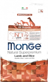 Monge Dog All breeds Puppy&Junior, ягня з рисом 2,5кг